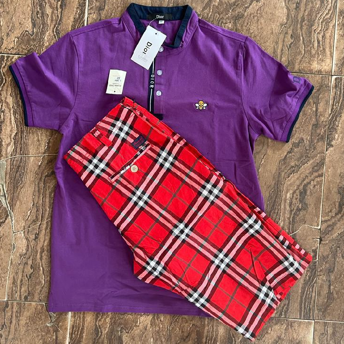 Men's Purple Polo Shirt and Red Plaid Shorts Set (FCFA 9,000 , Negotiable) – Buy Online at Best Price • Shoppy MarketSpace